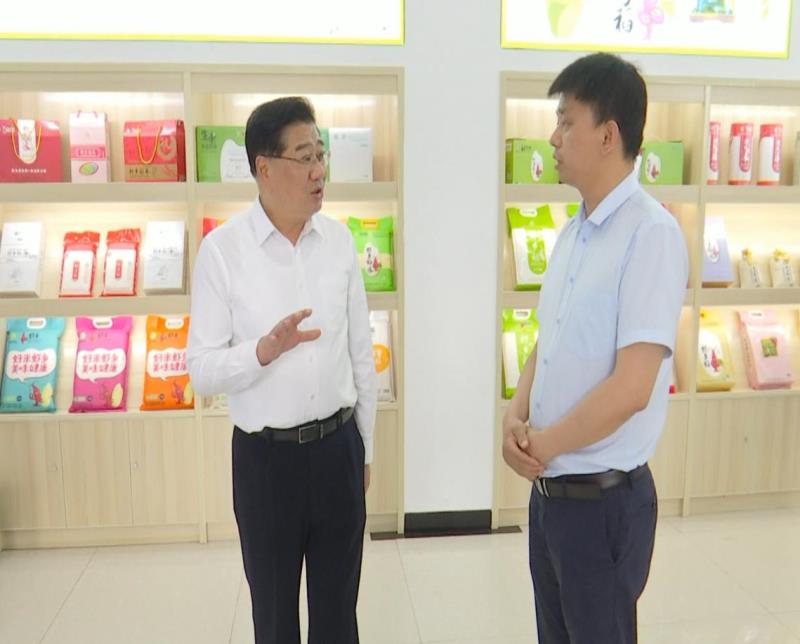 中國(guó)糧油學(xué)會(huì)理事長(zhǎng)張桂風(fēng)、省糧食局局長(zhǎng)胡新明調(diào)研蝦鄉(xiāng)食品